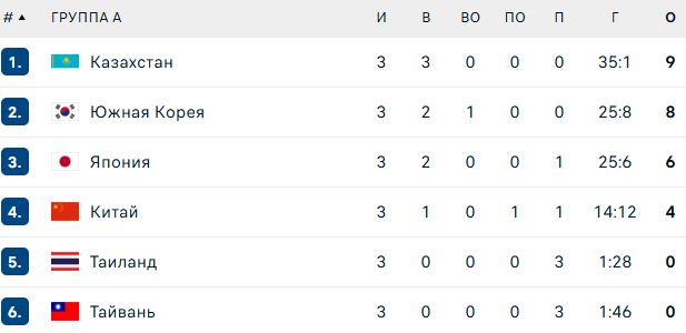 Подопечные Олега Болякина выиграли все три встречи на старте, забросив 35 шайб и пропустив лишь одну. Следующий матч Казахстан проведёт против Японии 8 февраля. Начало встречи в 09:00 по времени Астаны.