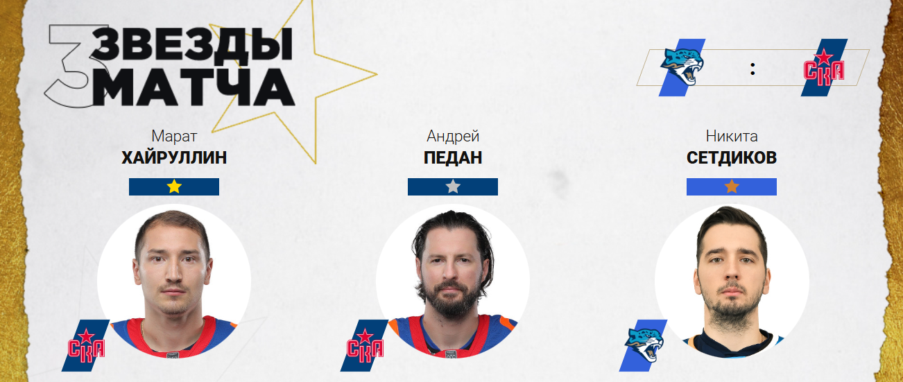 Форвард столичного клуба Никита Сетдиков в этой встрече забросил шайбу, нанёс четыре броска в створ и был признан третьей звездой встречи.