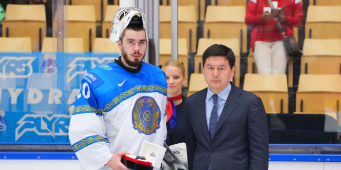 Голкипер сборной Казахстана провёл на льду все 60 минут и отразил 35 бросков по своим воротам. Он был признан лучшим игроком своей команды в этой встрече.