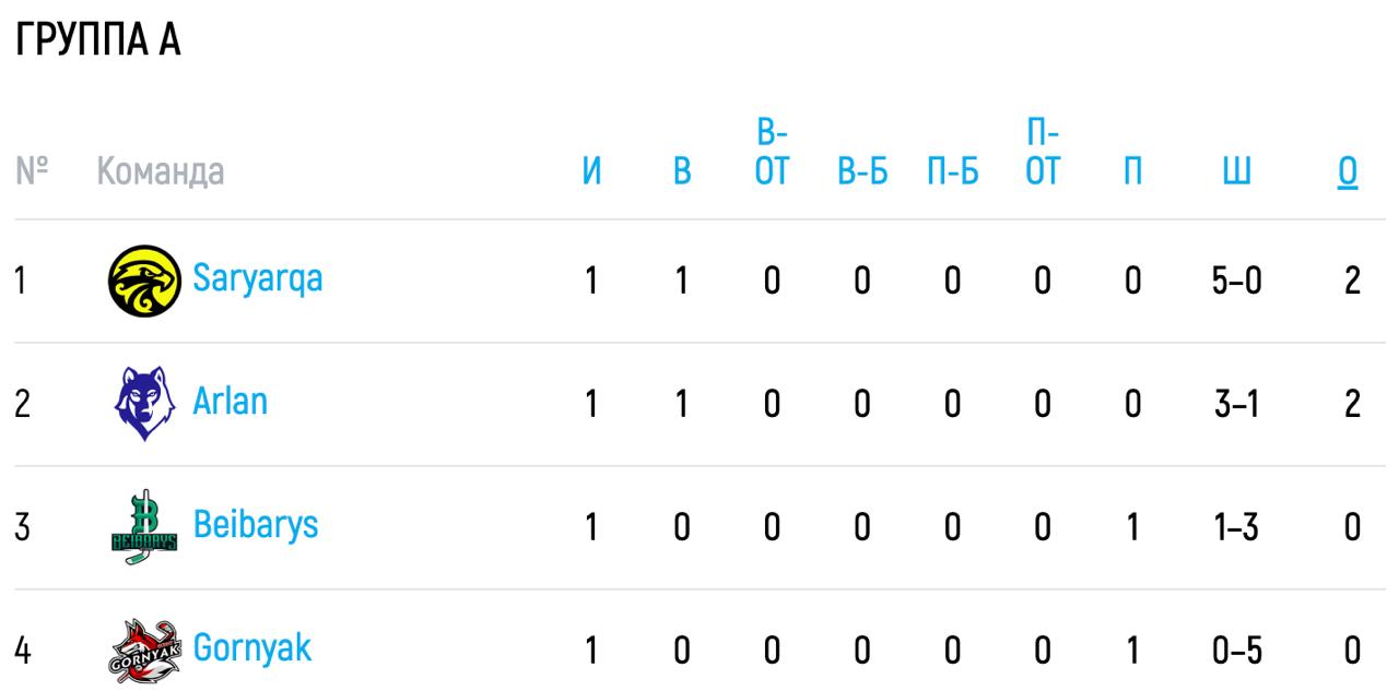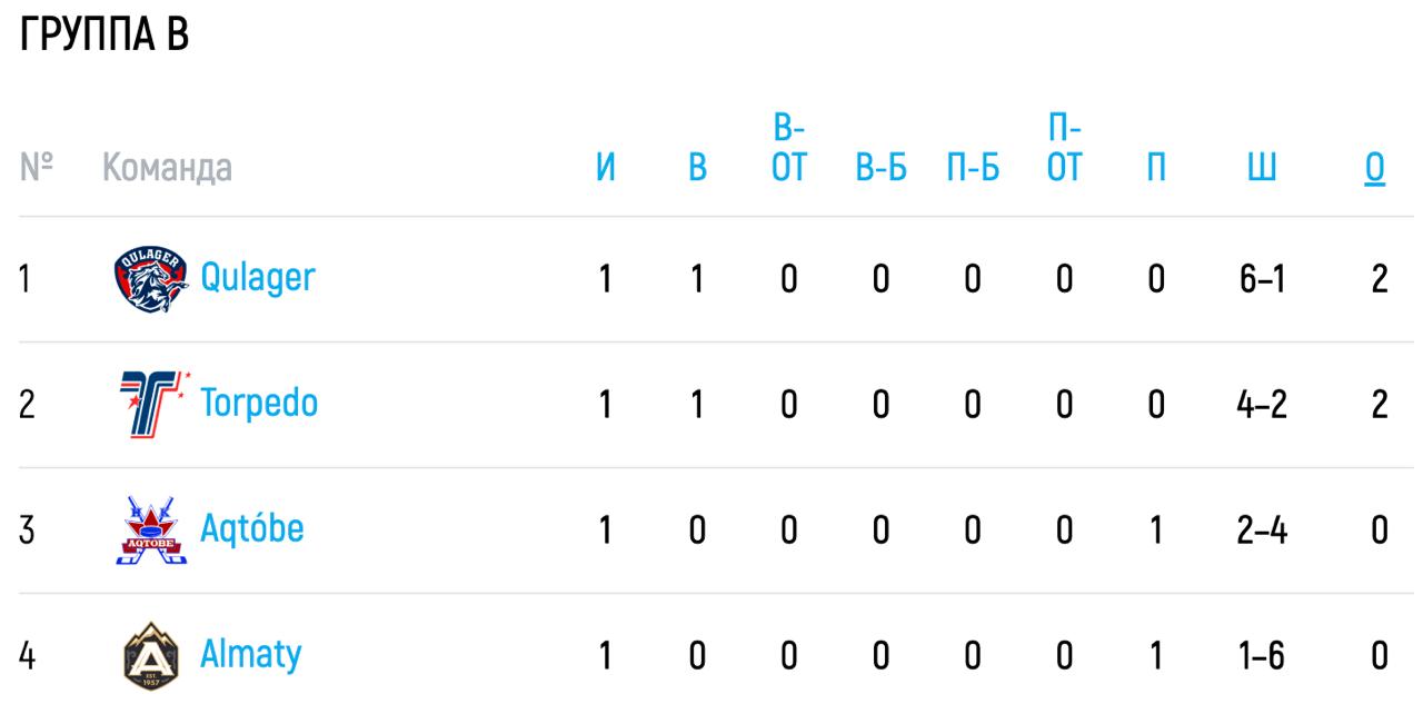 Группу "В" возглавляет "Кулагер", имея в активе победу над "Алматы" (6:1), на второй строчке расположилось "Торпедо", обыгравшее "Актобе" со счётом 4:2.