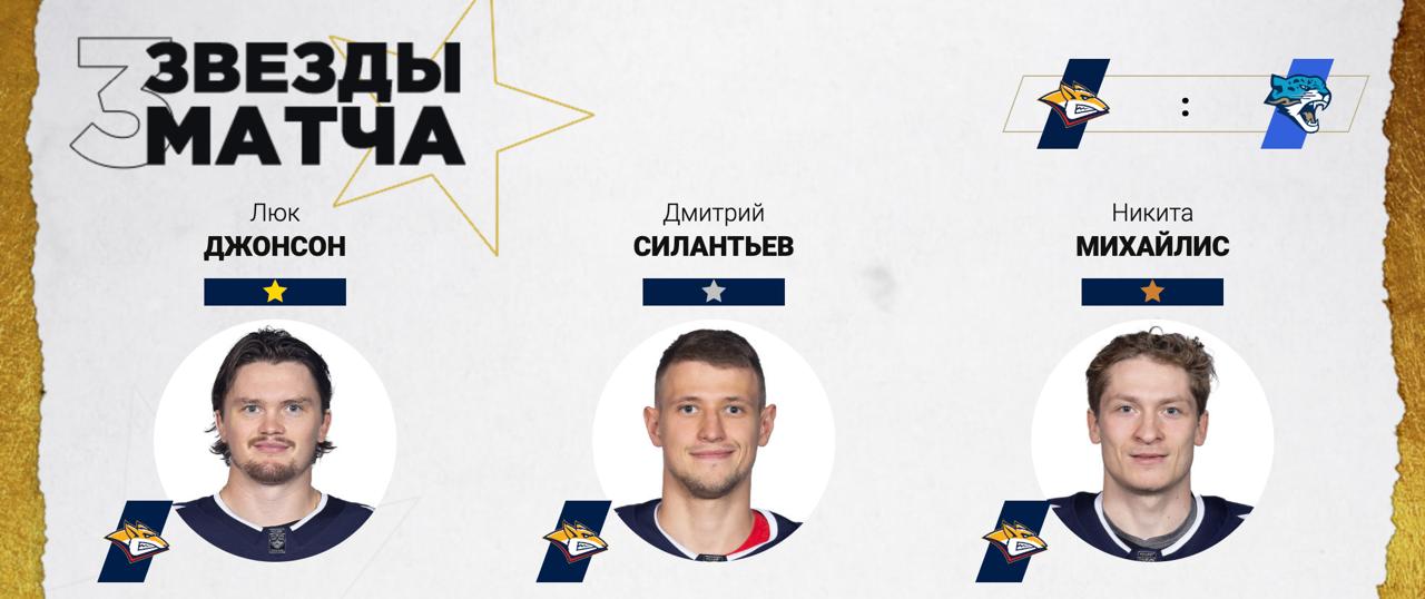 Нападающий сборной Казахстана, выступающий в составе магнитогорского клуба, Никита Михайлис набрал 2 (1+1) очка и нанёс два броска в створ, за что был признан третьей звездой встречи.