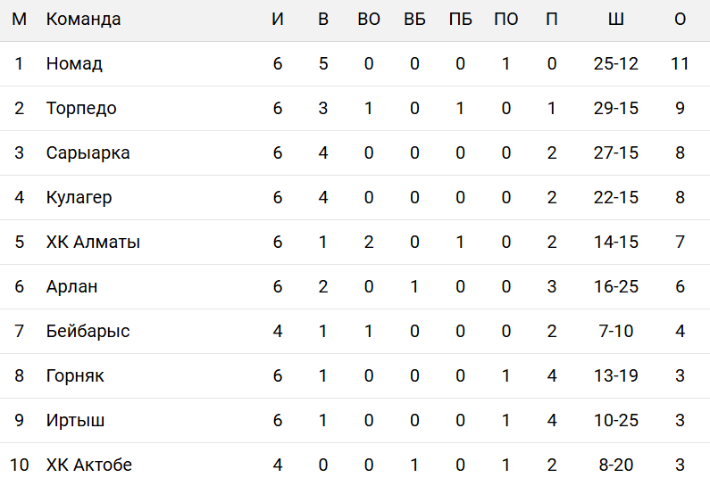 Астанинский "Номад" возглавил турнирную таблицу Pro Hokei Ligasy. После шести матчей подопечные Константина Пушкарёва набрали 11 очков, одержав пять побед.