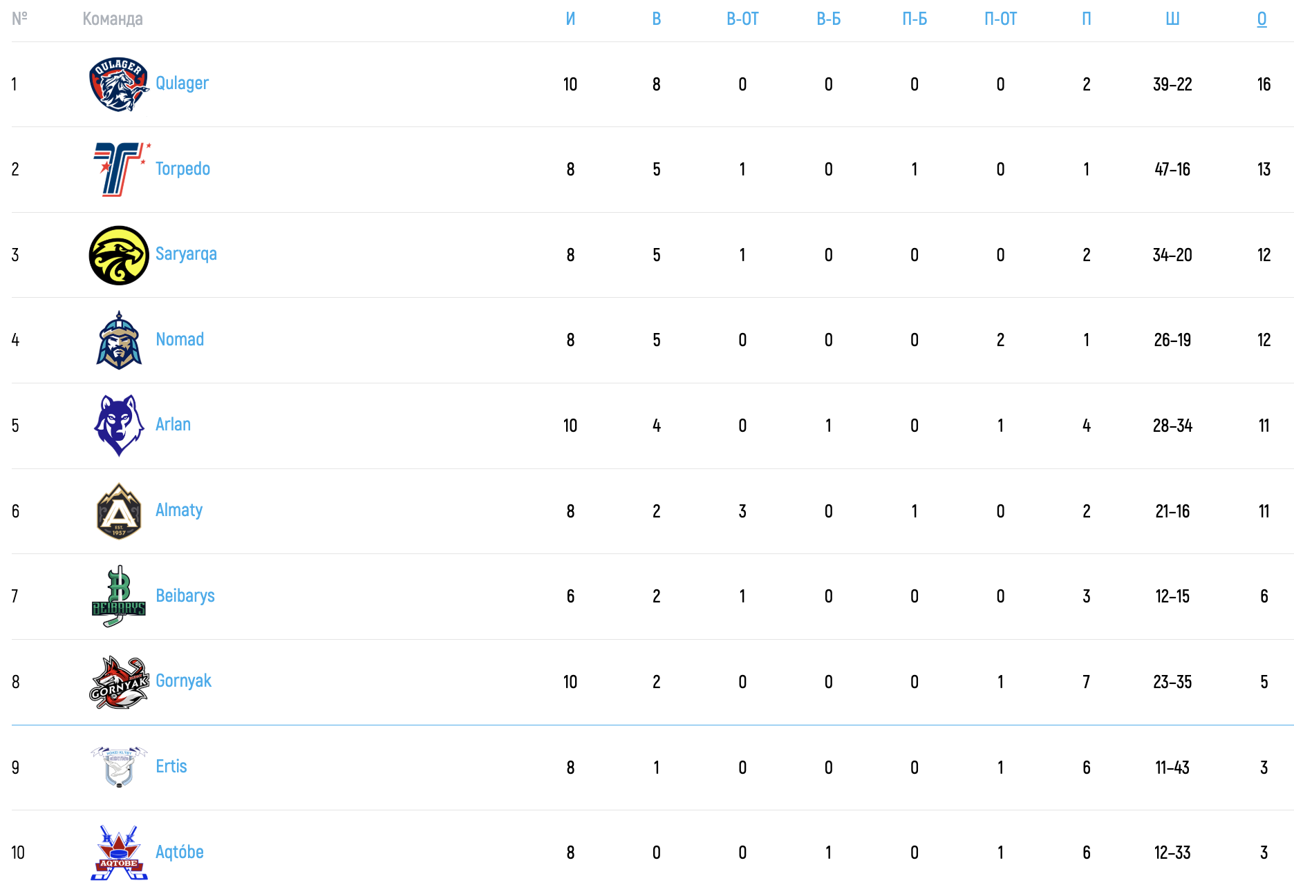 Первое место занимает петропавловский "Кулагер", имеющий 16 очков в активе. На втором месте расположилось "Торпедо", тройку лидеров замыкает "Сарыарка".