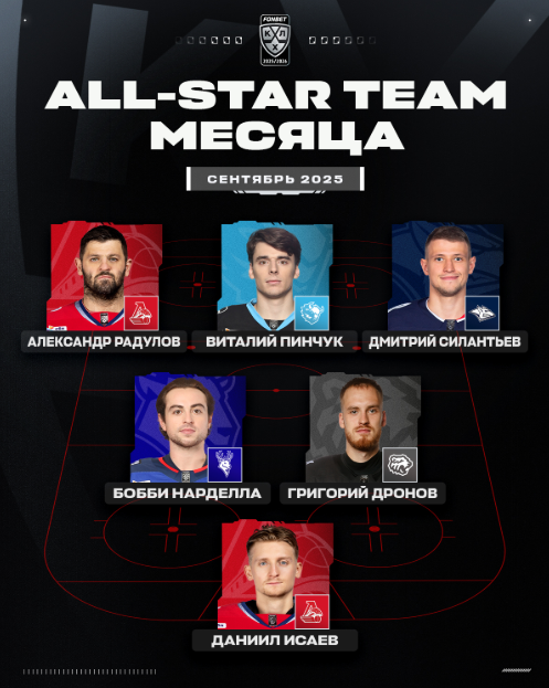 Континентальная хоккейная лига представила символическую сборную сентября.