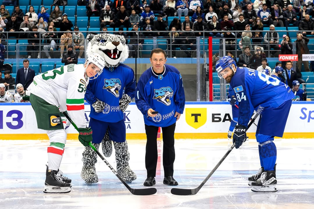 Президент Национального олимпийского комитета Республики Казахстан Геннадий Головкин посетил матч "Барыс" - "Ак Барс". Чемпион мира сделал символическое вбрасывание.