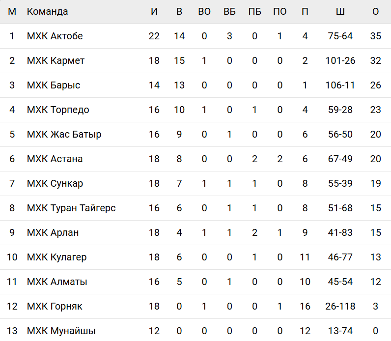 Замыкает турнирную таблицу "Мунайшы", проигравший все 12 матчей на старте сезона.