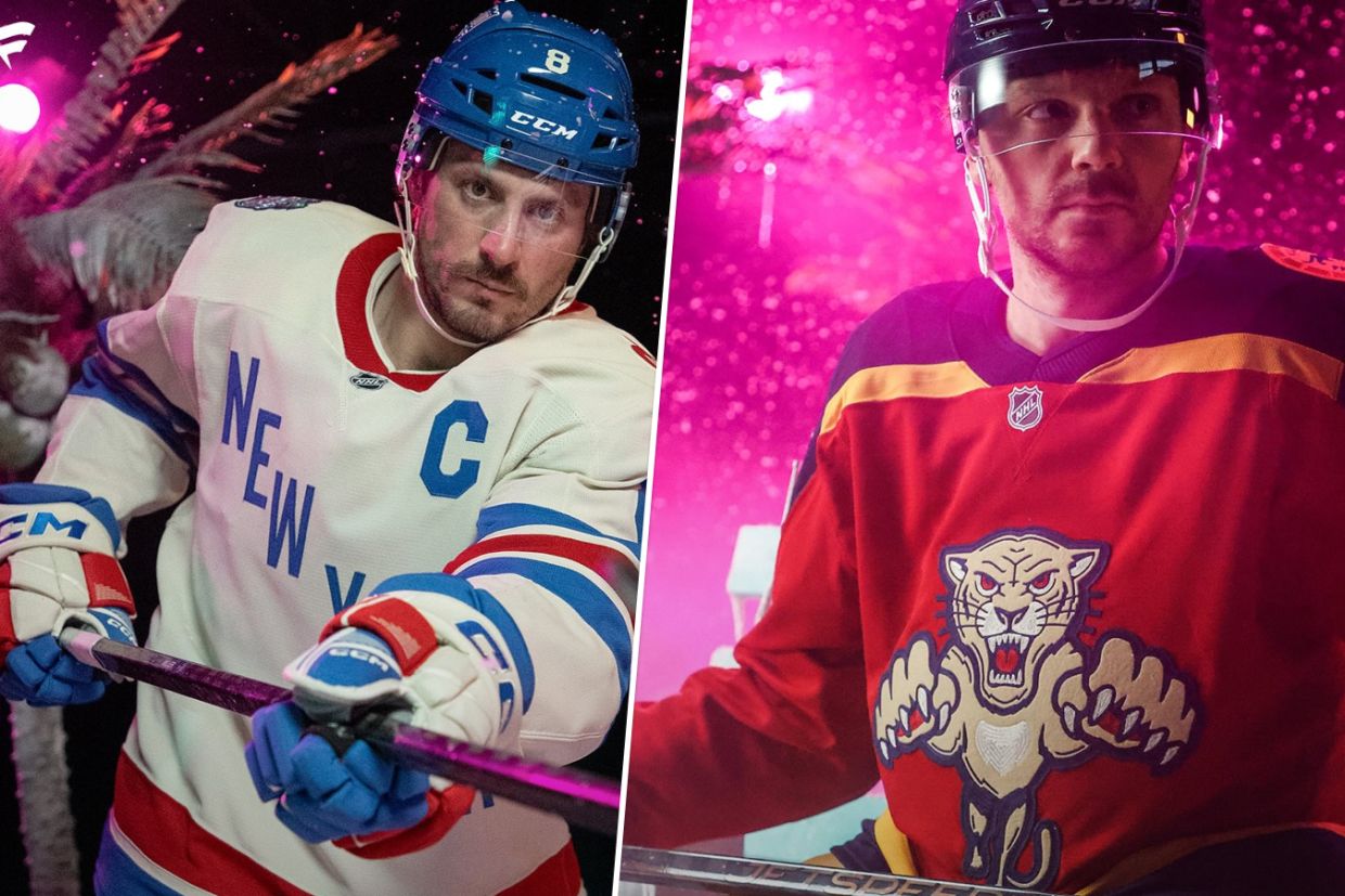 Пресс-служба Национальной хоккейной лиги представила комплекты формы "Флориды Пантерз" и "Нью-Йорк Рейнджерс" на матч "Зимней классики", который состоится 3 января на стадионе "Лоандепо Парк" в Майами.