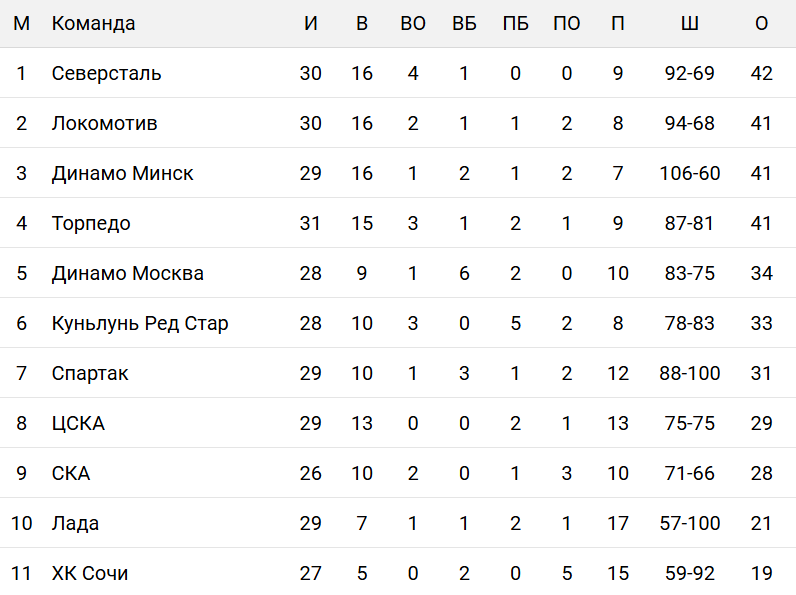 Лидирует на Востоке "Металлург" с 48 очками в 30 встречах.