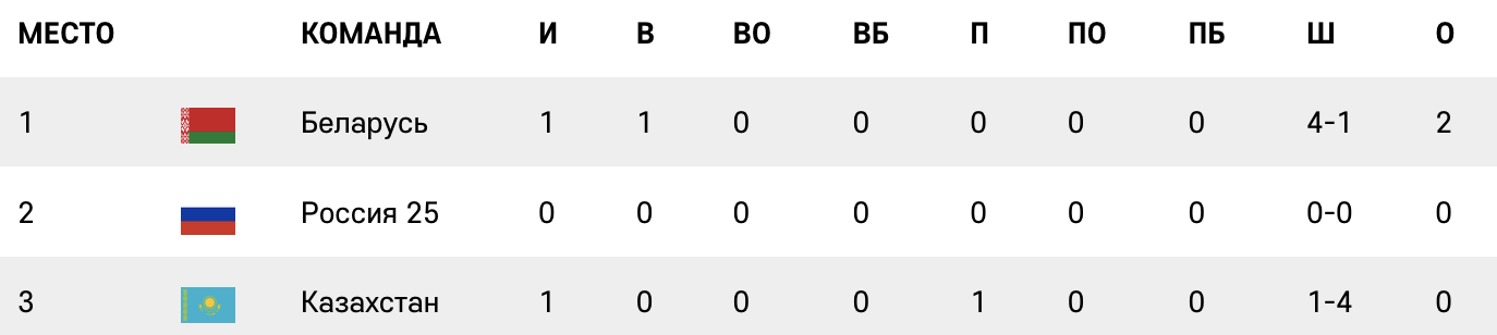 Завершился первый игровой день Кубка Первого канала. Сборная Казахстана в стартовом матче уступила Беларусь со счётом 1:4 и занимает третье место.