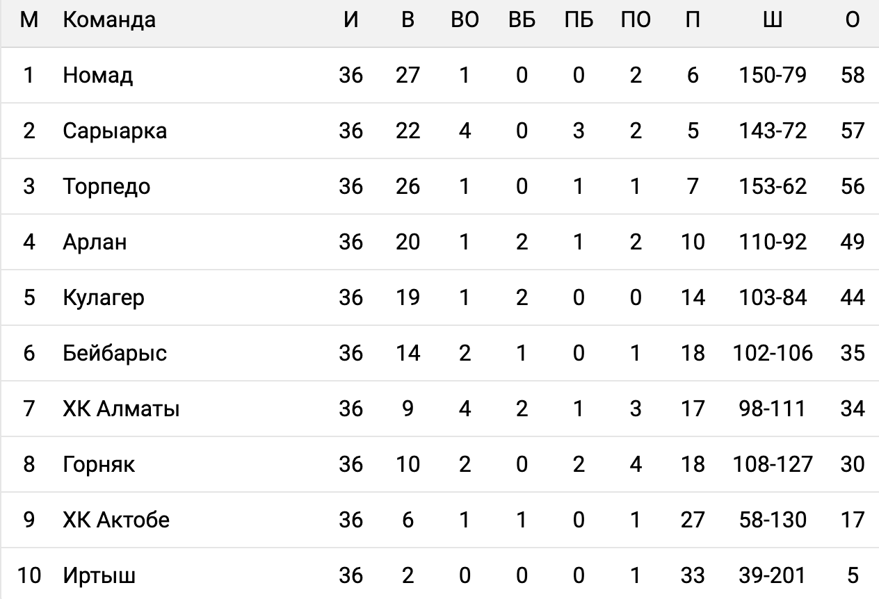 По итогам 36 матчей "Номад" занимает первое место в турнирной таблице с 58 очками в активе. На втором месте расположилась "Сарыарка". Подопечные Владимира Князева набрали 57 очков. Тройку лидеров замыкает "Торпедо" с 56 баллами.