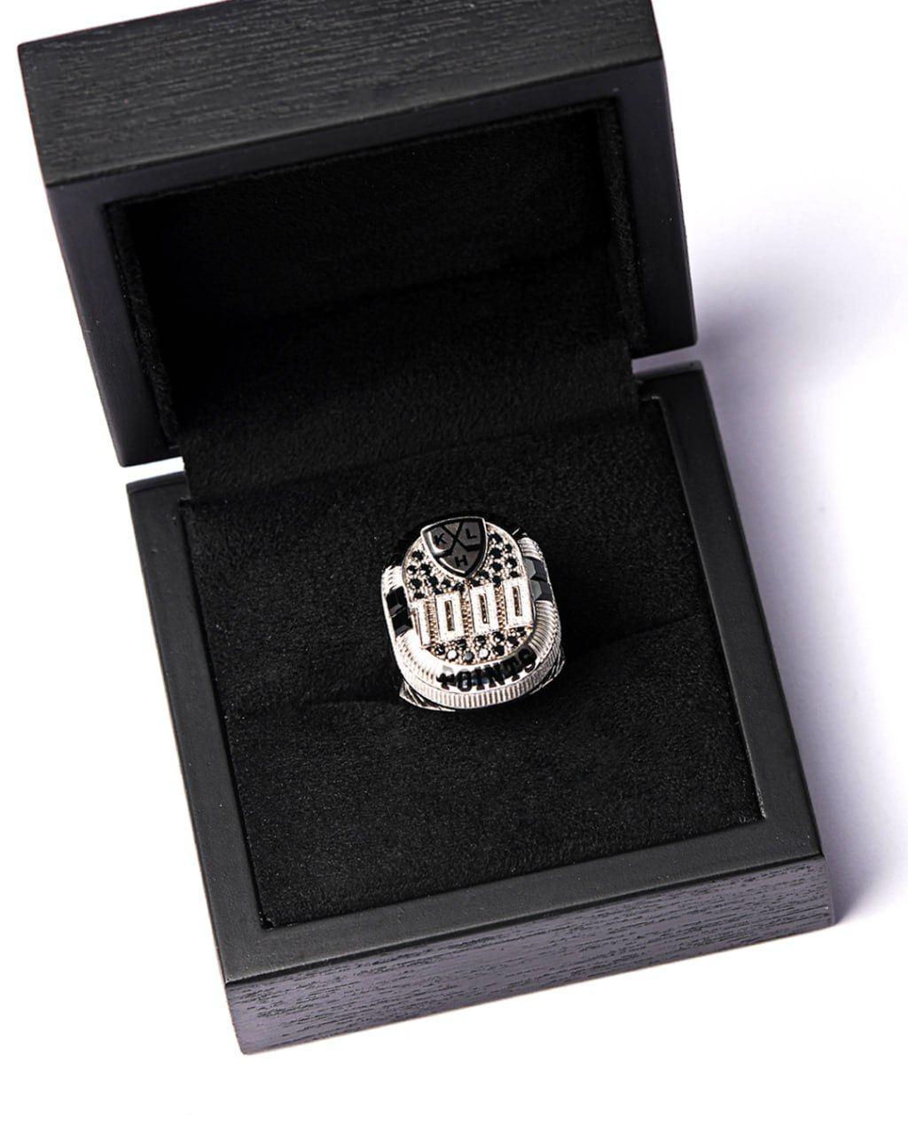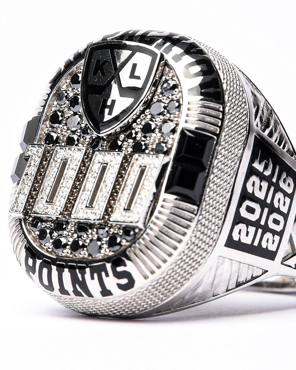На перстне изображён 87-й номер игрока, указан сезон и нанесена надпись: "1000 points (1000 очков)".