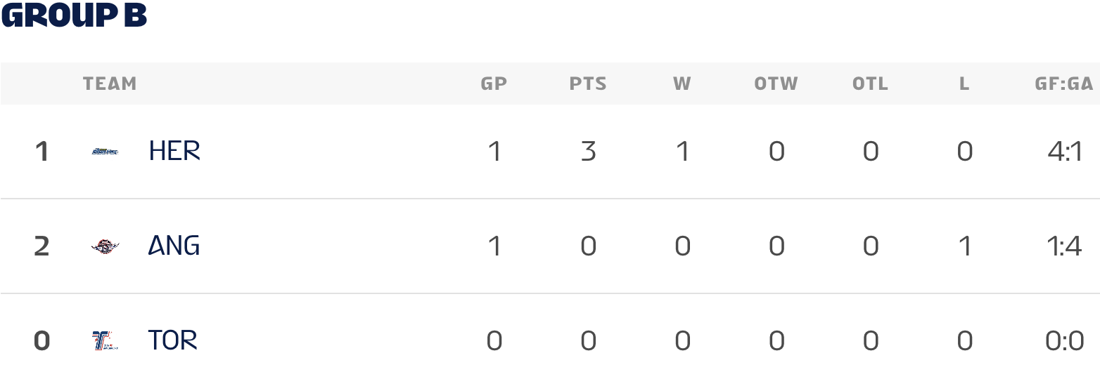 "Хернинг Блю Фокс" уверенно обыграл "Дюк Д`Анже" со счётом 4:1, "Ноттингем Пантерз" всухую одолели "Мого" (4:0).
