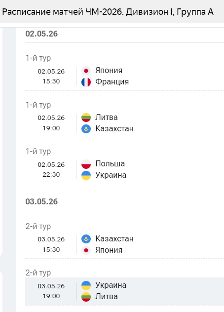 Талгат,со 2-го мая чемпионат в нашем первом дивизионе ,группа А в Польше.В элитном дивизионе числа с 15- го мая.