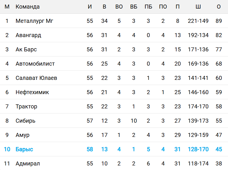 Подопечные Михаила Кравца в 58 встречах набрали 45 баллов и продолжают занимать 10-е место на Востоке. До "Сибири", идущей на восьмом месте, остаётся десять очков. При этом новосибрцы имеют один матч в запасе.