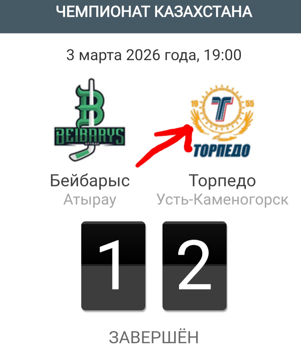 В четвёртом матче серии в рамках 1/4 финала плей-офф чемпионата Казахстана усть-каменогорское "Торпедо" обыграло "Бейбарыс".