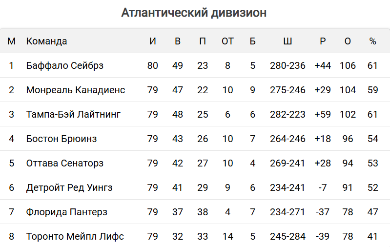 Помимо "лавин" ещё семь команд обеспечили себе место в плей-офф - "Каролина", "Даллас", "Баффало", "Монреаль", "Тампа-Бэй", "Миннесота" и "Питтсбург".