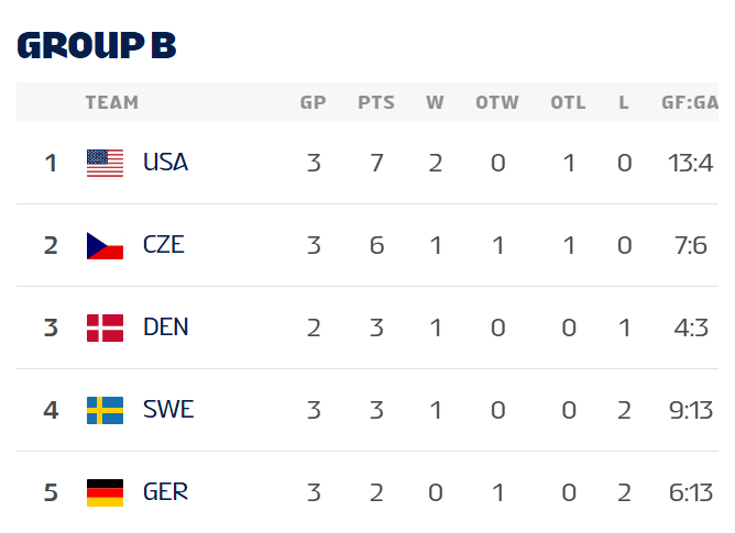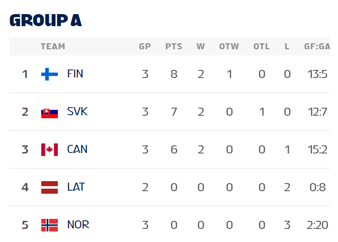 Финляндия благодаря победе над Словакией (5:4 ОТ) продолжает лидировать в группе "А". В параллельной группе сборная США сместила Чехию с первого места.